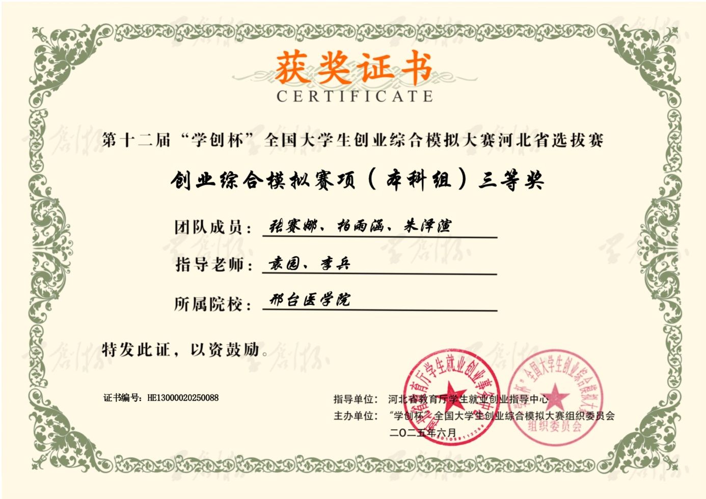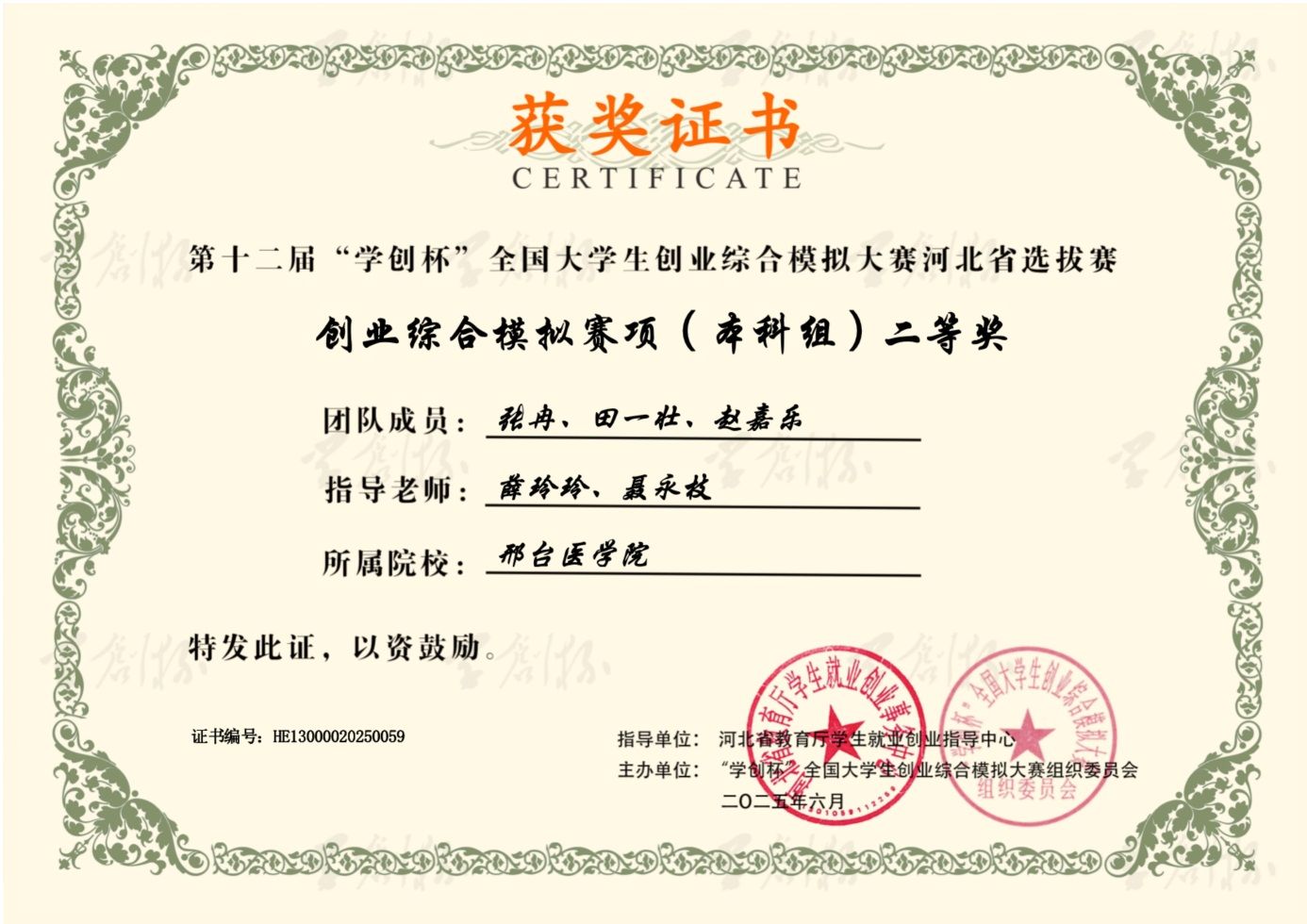 量子裂变 | 张冉、田一壮、赵嘉乐 | 薛玲玲、聂永枝 | 中医系 | 创业综合模拟赛项 | 省赛二等奖 |